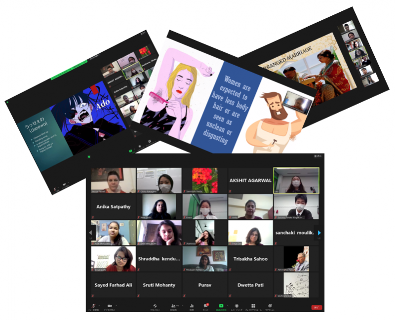 まずは、互いのコロナ状況を報告。テーマについて双方がパワーポイントで発表したあと、意見交換します。話題は実にさまざま。男女格差、伝統的な結婚など、タブーな話題にも切り込んでいきます。