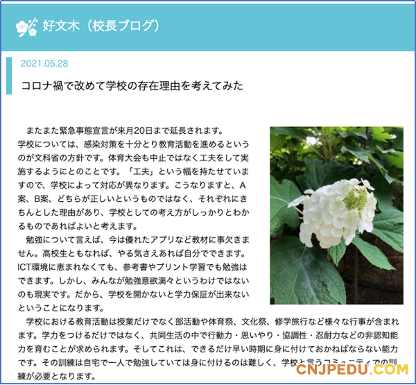 随着紧急状态宣言延长,日本文部科学省宣布了新的政策:学校要采取充分的预防感染对策来保证教育活动的进行。受此影响,好文学园校长在博客上发表了自己的想法,疫情下的学校存在的理由是什么。