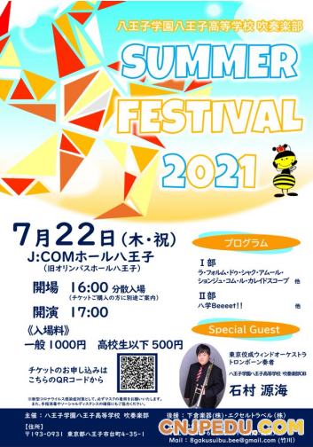 八王子学園八王子高校(東京都八王子市)の吹奏楽部が7月22日にJ:COMホール八王子でサマーフェスティバルを開催し演奏を披露することになりました。ゲストはオーケストラで活躍するトロンボーン奏者の石村源海さん! 八王子高校吹奏楽部出身の先輩です。チケットの販売が始まっています。頑張れ、八高吹奏楽部!
