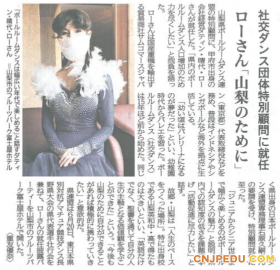 山梨县当地报纸采访了毕业于山梨英和中学·高中(山梨县甲府市)的Dartin·晴代·Lo。Lo女士作为公司经营者往返于日本、印度尼西亚和新加坡之间,同时也是一位知名的国标舞运动员。Lo女士认为无论是初学者还是专业舞者都能快乐地享受国标舞的魅力。为了让更多人了解国标舞,Lo女士任职成为县舞蹈联盟的特别顾问。Lo女士说“山梨,尤其是我的母校山梨英和,不仅让我学会了英语,也传授了我人生价值观,是我迈向人生的第一步。