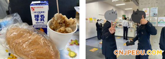 照片上的是原味炸鸡(3个150日元)和黄豆面包。同学们说比便利店的炸鸡好吃,还便宜。而且校内还有面包自动贩卖机,肚子饿的时候真是帮了大忙啊!