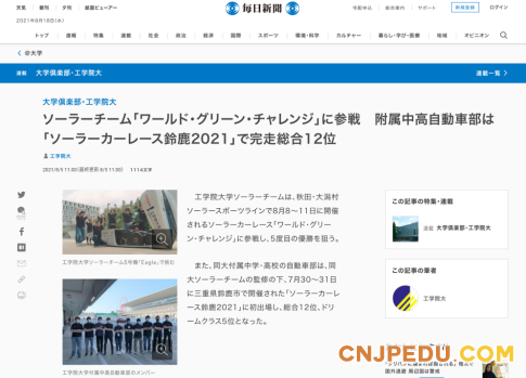 全国紙『毎日新聞』でも工学院チームは紹介されています。