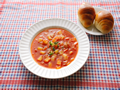美食家渡边あきこ创作料理以【合格饭】为主题的早饭。这次是加入很多蔬菜的浓菜汤。加入圆葱、胡萝卜、土豆等,和西红柿汁简单做成。前一天晚上做好,早上很轻松的。