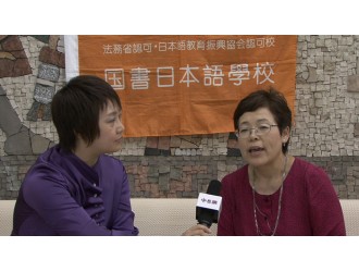 国书日本语学校取缔役校长小林妙子正在接受日本留学网程海燕的专访。 2014年7月10下午,日本留学网一行来到了位于东京板桥区的国