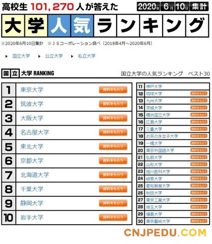 日本JS法人公司针对10万名高中生进行了关于最有人气的大学的问卷调查。